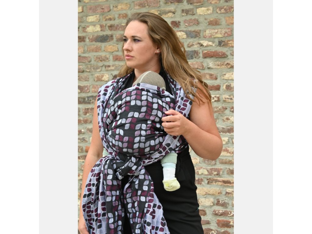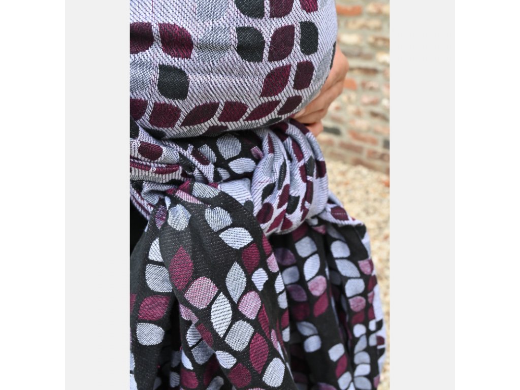 Yaro Petals Duo Black Purple Hemp je středně tlustý pevnější šátek, který je perfektní volba pro děti od zhruba 5-6 měsíců a s přehledem si poradí i s tříletým nošencem ve vícevrstveném úvazu, proto šátek řadíme mezi šátky na celé nosící období. Díky konopí bude šátek velmi nosný a méně pružný a bez problémů ho vyperete v pračce, pokud budete dodržovat pokyny výrobce.