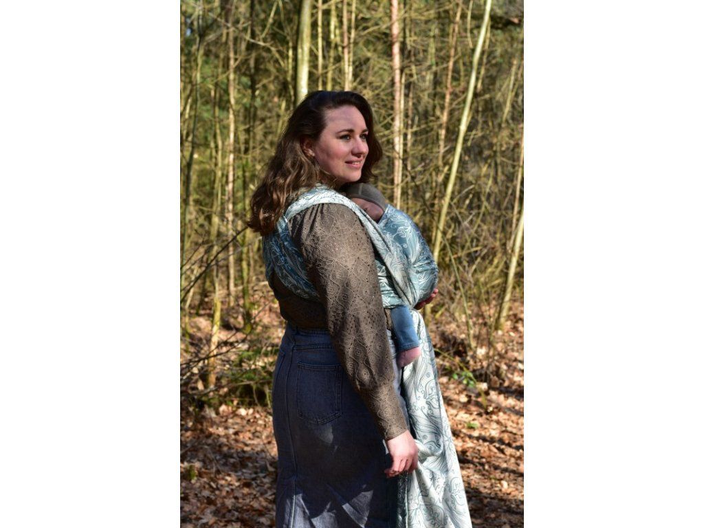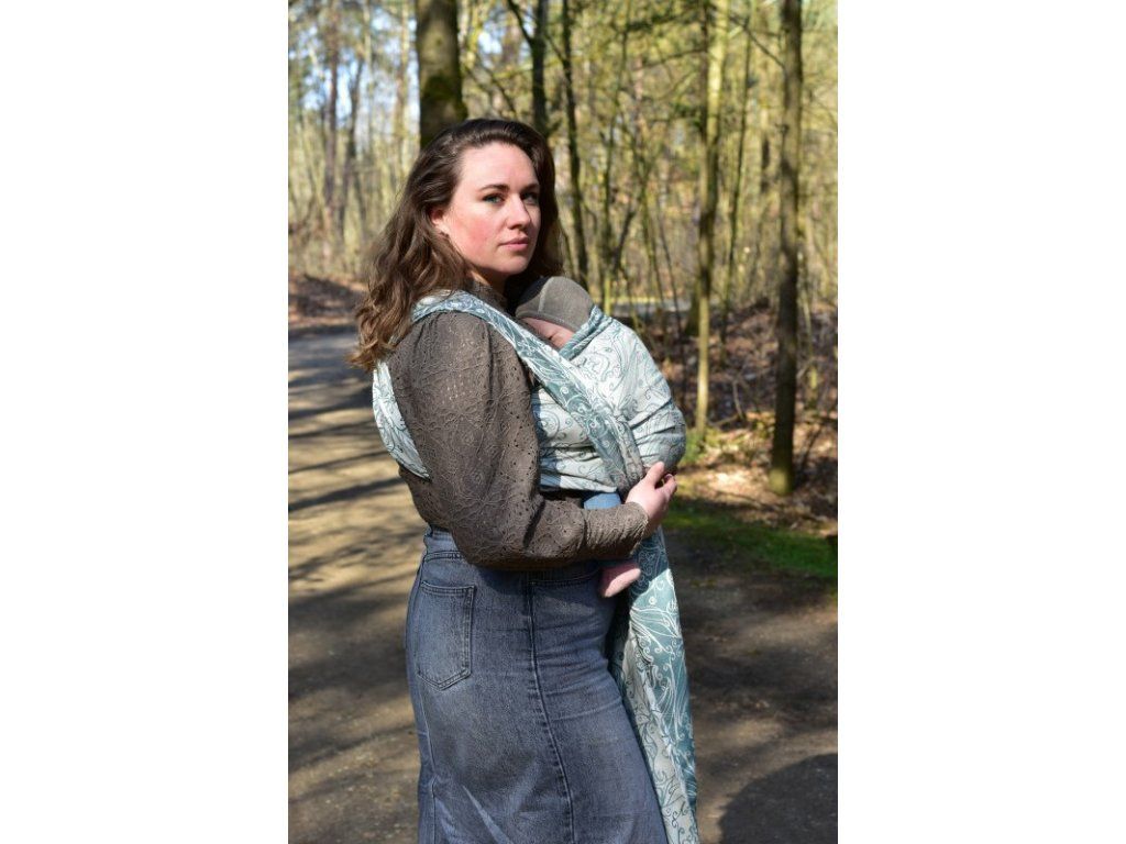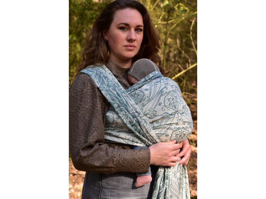 Yaro Elvish Duo Turquoise Wool Silk je lehký, tenký, měkký a zároveň pružný šátek vhodný pro miminka od narození, díky svému složení je to perfektní šátek na letního novorozence. S přehledem si poradí i s dvouletým nošencem, proto by sedal šátek zařadit mezi kousky na celé nosící období.