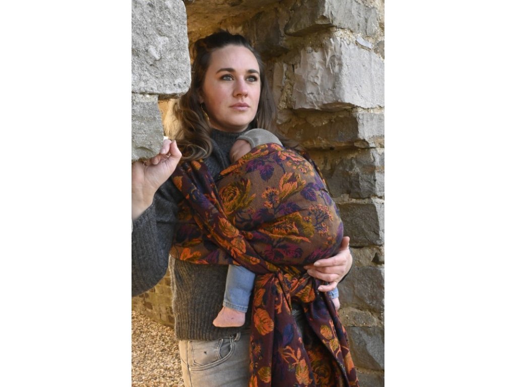 Yaro Ring Sling La Peonia Trinity Blue Caramel Wool Tencel
