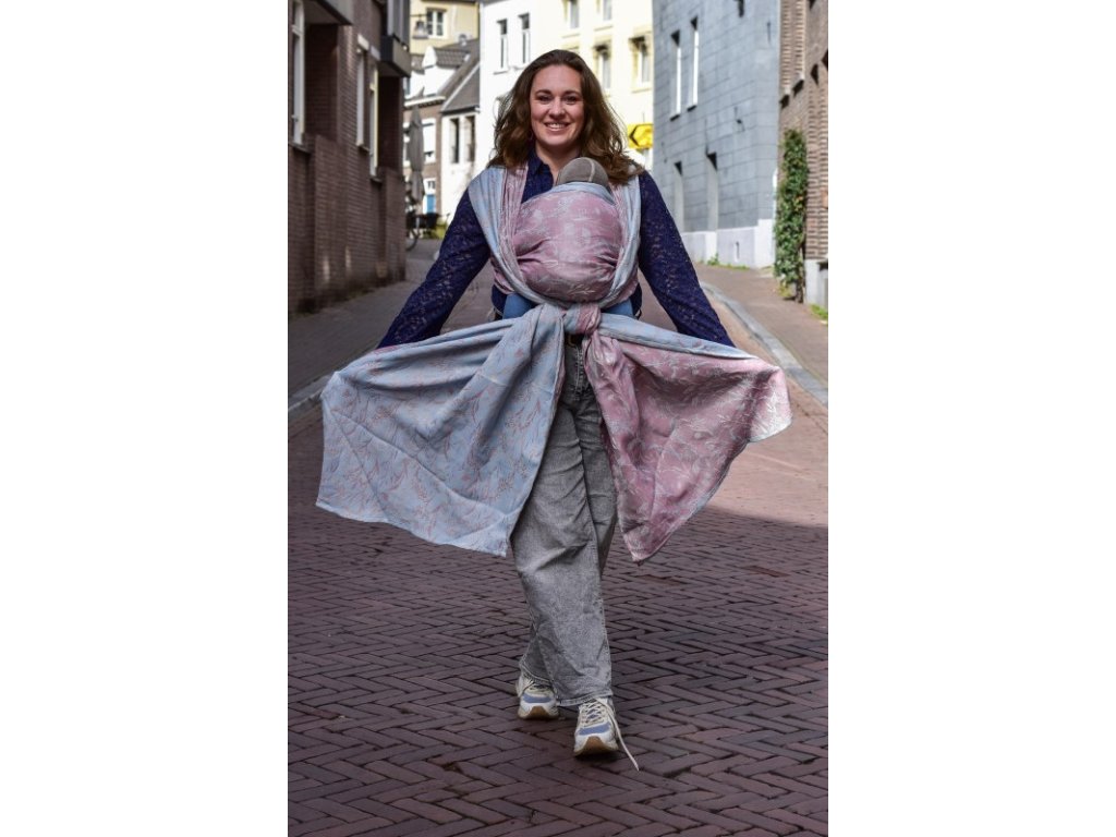 Šátek má krásnou šířku 72 cm. Tento Ring Sling je možné nosit na obou ramenou.