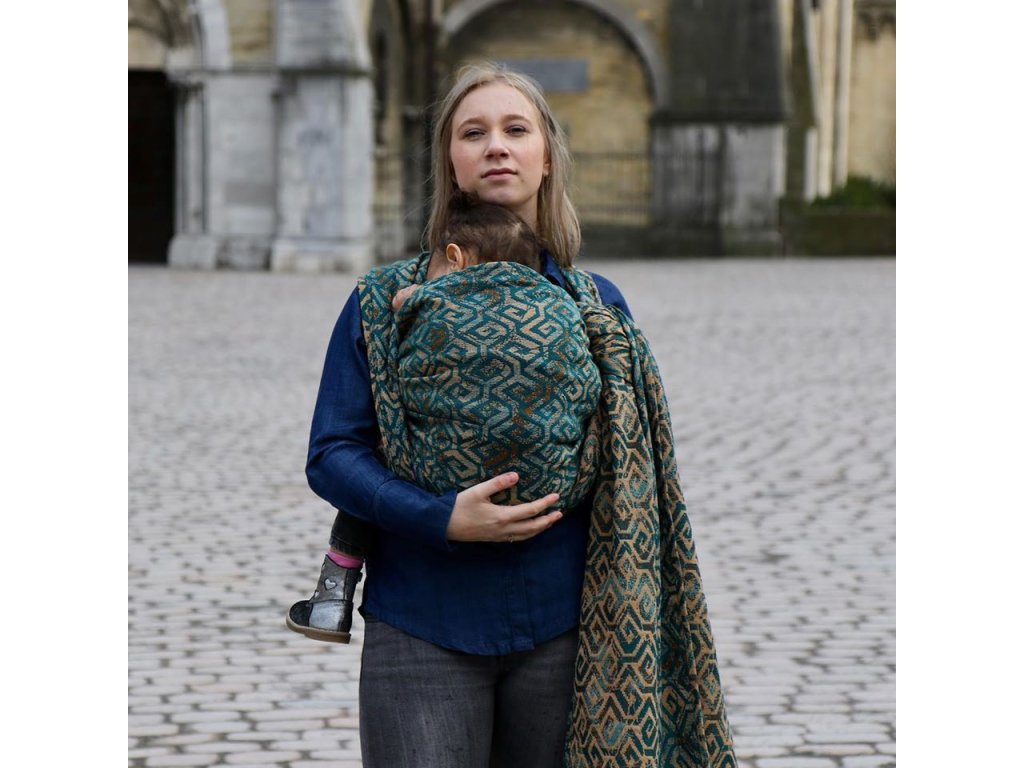Yaro Ring Sling Xi Ultra Ocher Teal Seacell je středně tenký žakárový šátek na nošení dětí, který oceníte pro děti zhruba od 5-6m měsíců a s přehledem zvládne i vašeho tříleťáka, díky tomu se řadí mezi šátky na celé nosící období.