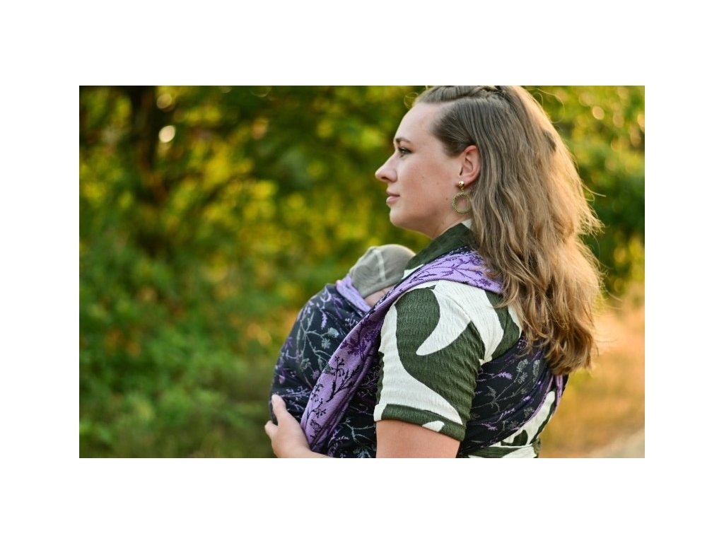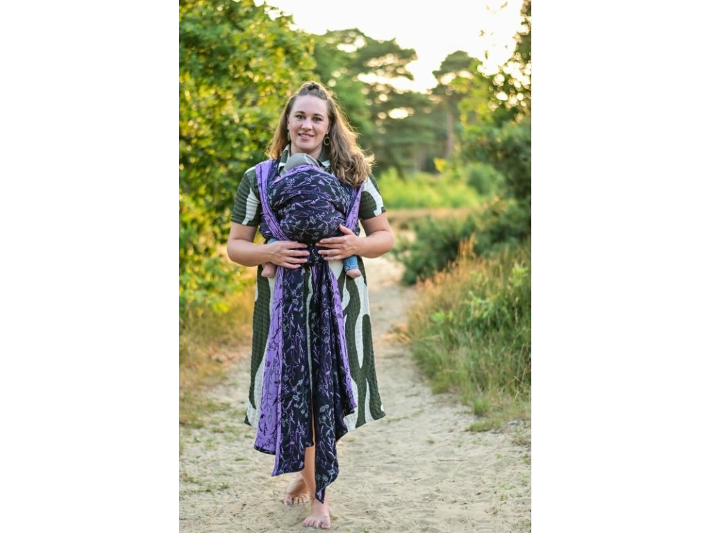 Yaro Terra Duo Black Silver Orchid Silk je velmi nosný žakárový šátek na nošení dětí, který je vhodný zhruba od 6-8 měsíců měsíců a již vás neopustí.