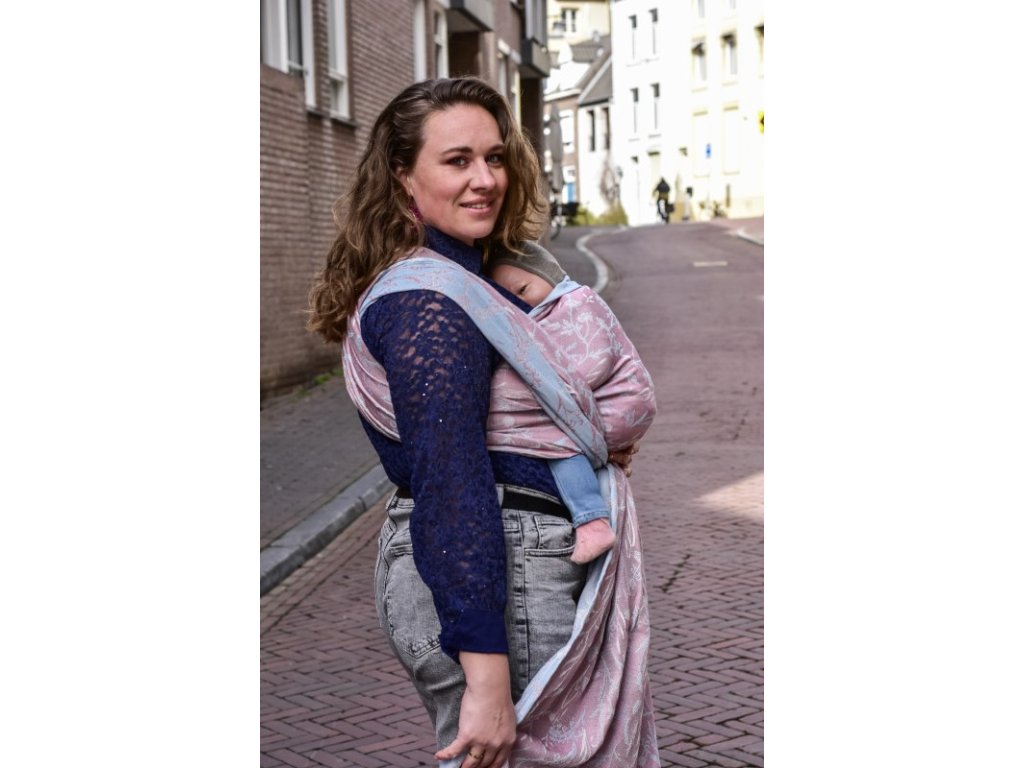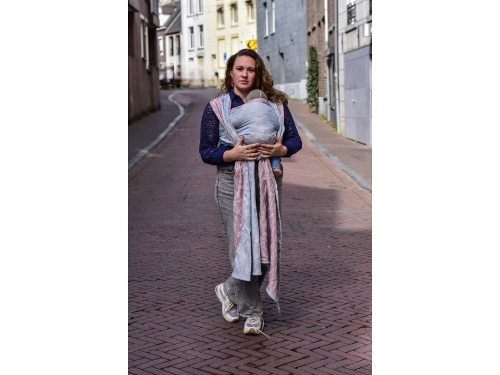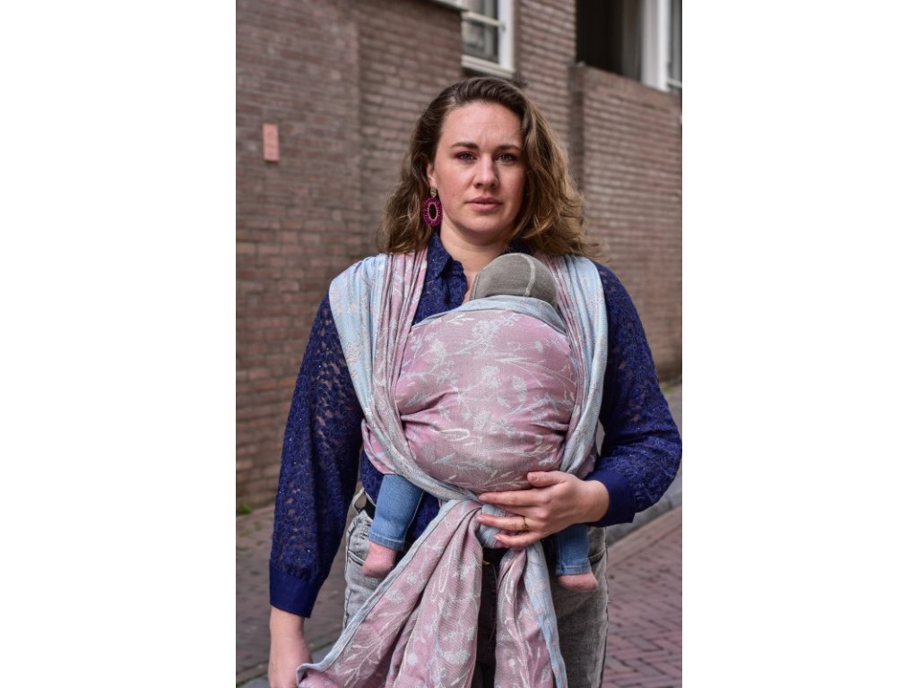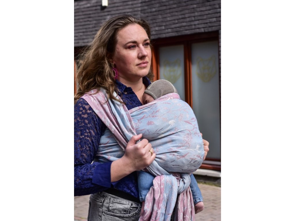 Šátek má krásnou šířku 72 cm, takže bez problému navážete miminko či staršího sourozence na břicho či záda.